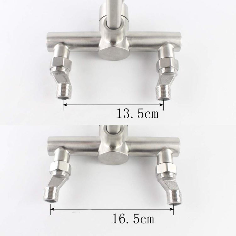 当店の壁付混合水栓付属の取付脚は湯・水の配管の間隔が15±1.5cmです。お部屋の湯・水の配管の間隔がより広い場合は取付脚の延長部品をご使用いただきます。その部品は別売れです。