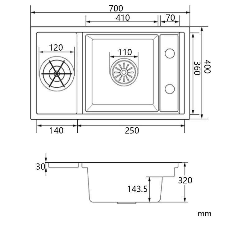 | シンク厚さ | 天板厚T=2.5mm 壁厚T=1mm |