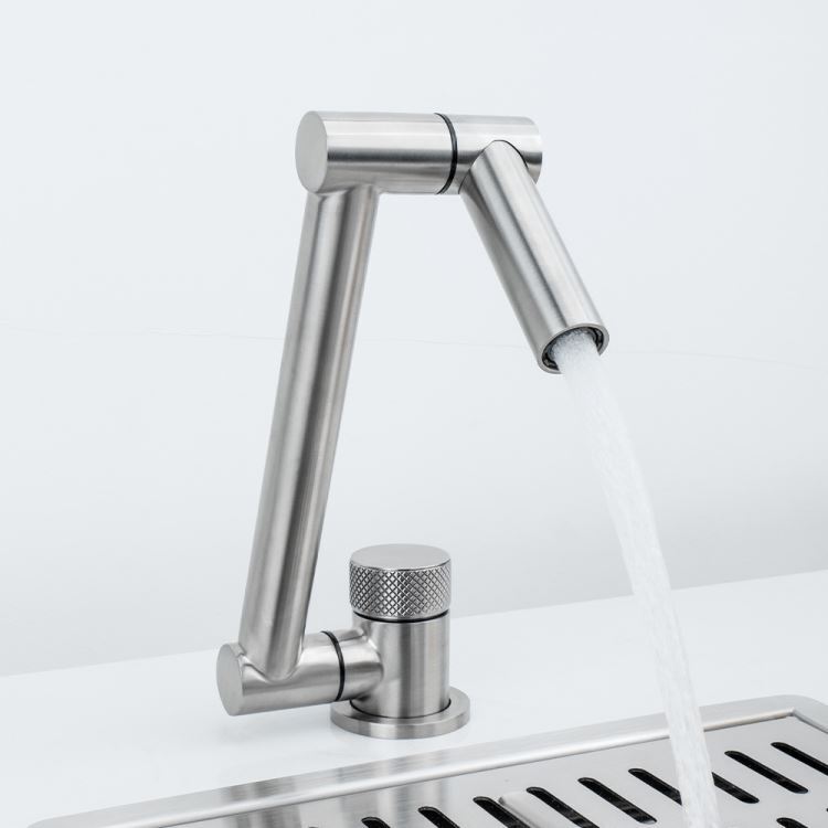 6.ポップアップ式の排水栓は、水切り板をシンクの底面に設置したときでも排水を操作することができます。