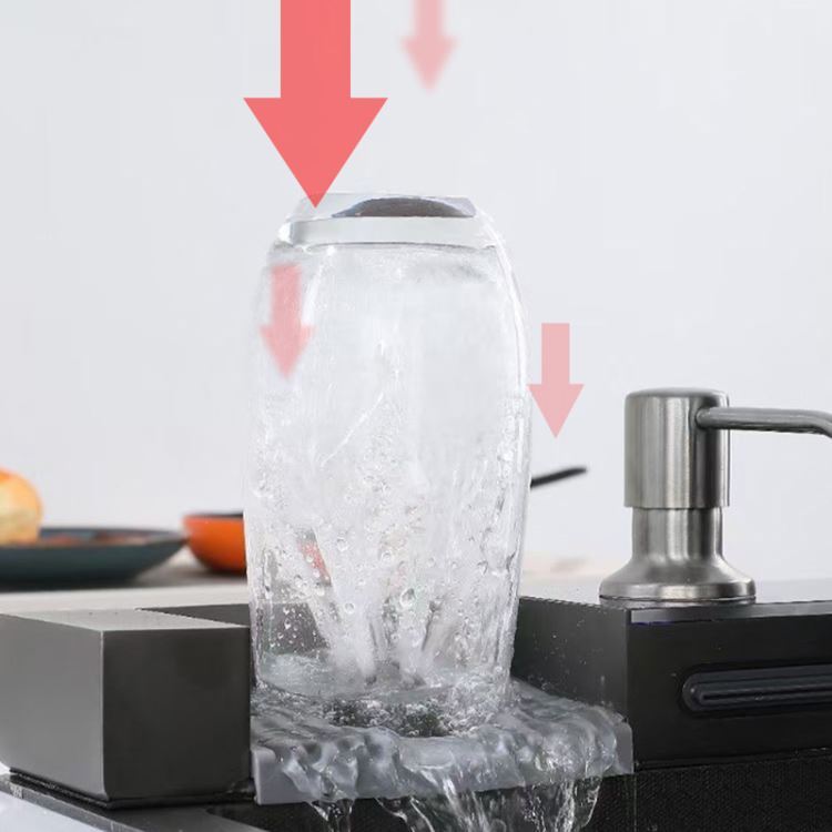 3.「水帘の滝」は、お皿を洗濯する際にストレスなく、大きな面積を覆い、水は飛び散らないです。