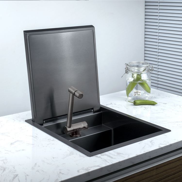 シンク用目隠しフタが付いて、シンクとカウンターの両方として便利で、スペースを大幅に節約できます。